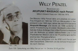 Wir orientieren uns an den Leitgedanken Willy Penzels, eine für den Patienten hilfreiche Verbindung zweier Medizinsysteme stetig weiterzuentwickeln und leicht erlernbar zu halten. Das Meridiantherapieverfahren AKUPUNKT-MASSAGE nach Penzel steht als Bindeglied dabei im Focus unserer Arbeit.